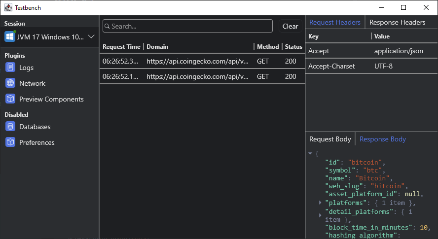 The network plugin allows you to capture and explore the network traffic in your project. It supports popular KMP networking libraries and is easily extended with support for custom HTTP clients.